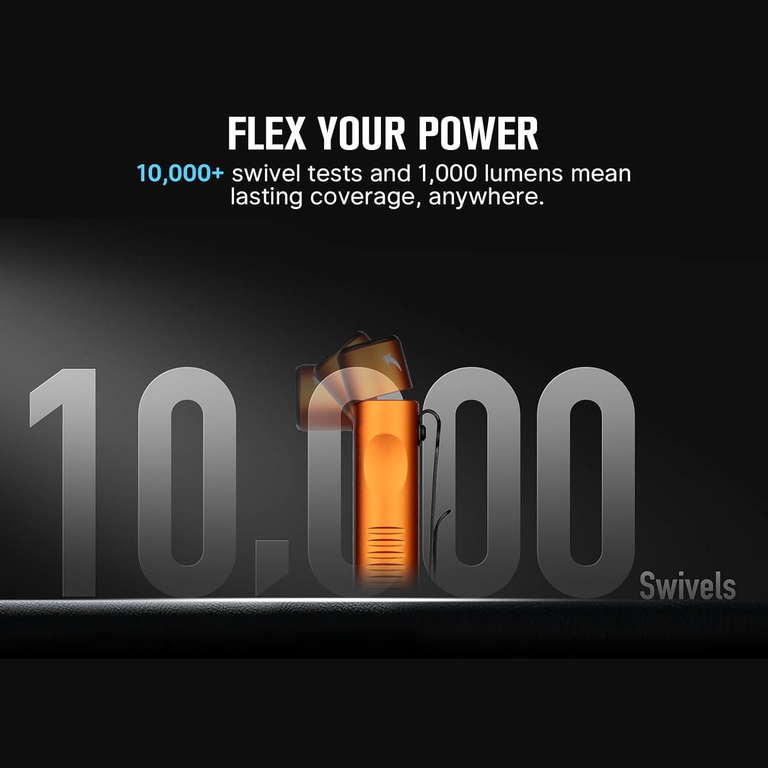 OLIGHT Arkflex Adjustable Right Angle EDC Flashlight, 1000 Lumens Rechargeable Handheld Lights, Two-Way Pocket Clip with an 0-90°Articulating Head for Working Outdoors and Repairing (Orange)