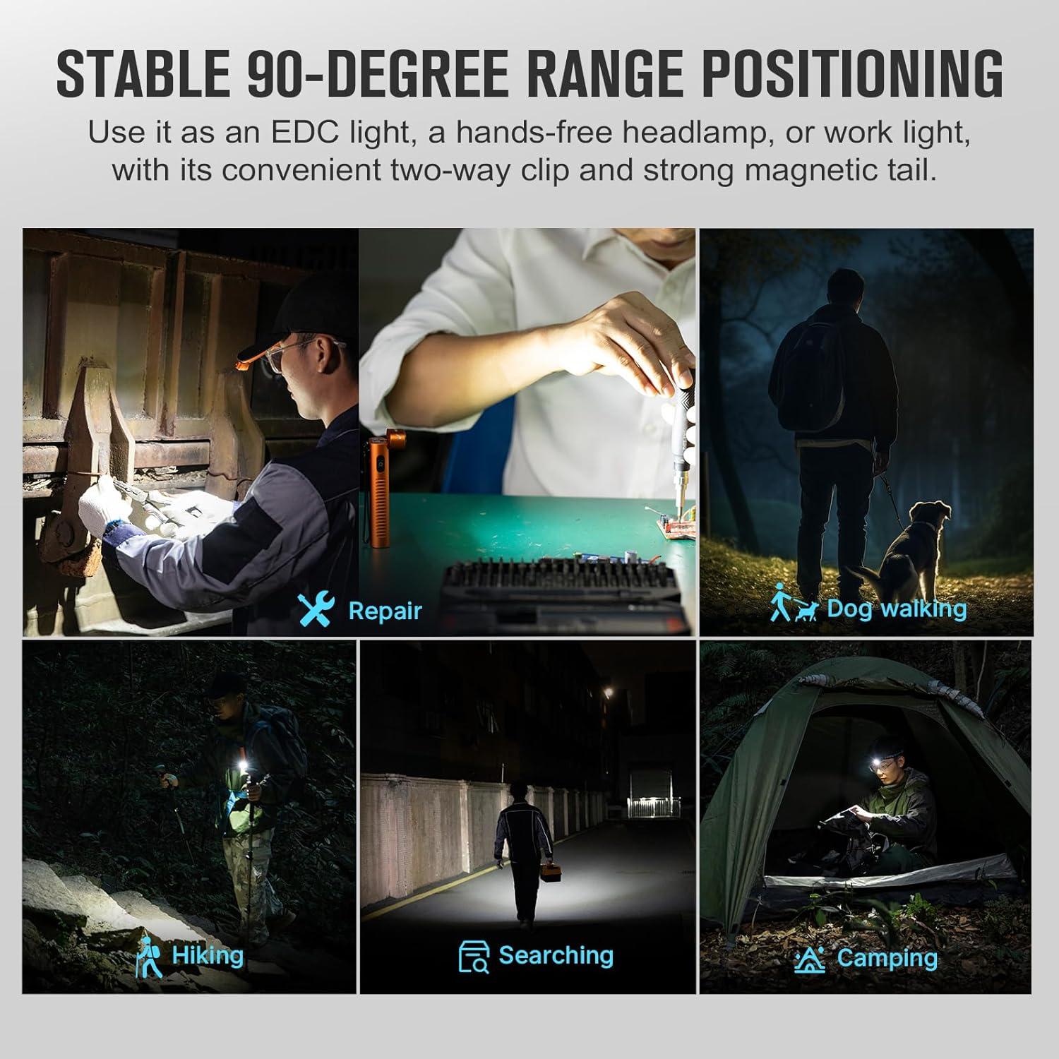 [A Must-Have Versatile Light] The swivel head, along with the strong magnetic base and the two-way pocket clip, enables flexible and convenient hands-free use