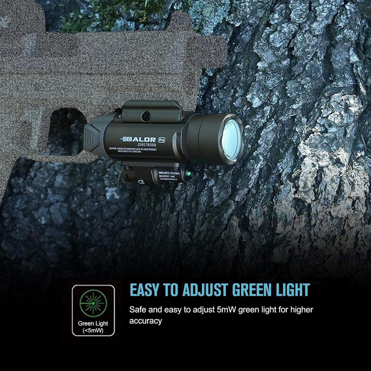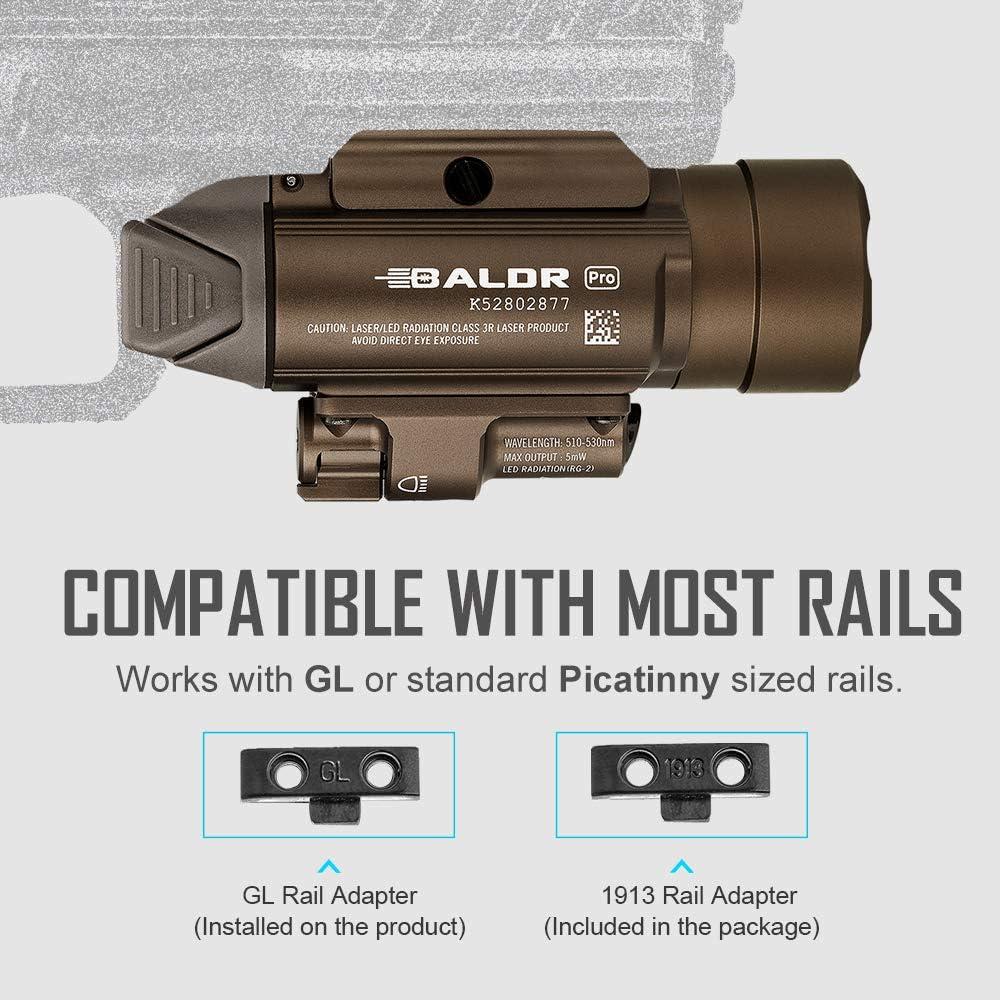 OLIGHT Baldr Pro 1350 Lumens Tactical Weaponlight with Green Light and White LED, 260 Meters Beam Distance Compatible with 1913 or GL Rail, Batteries Included(Desert Tan)(Black)