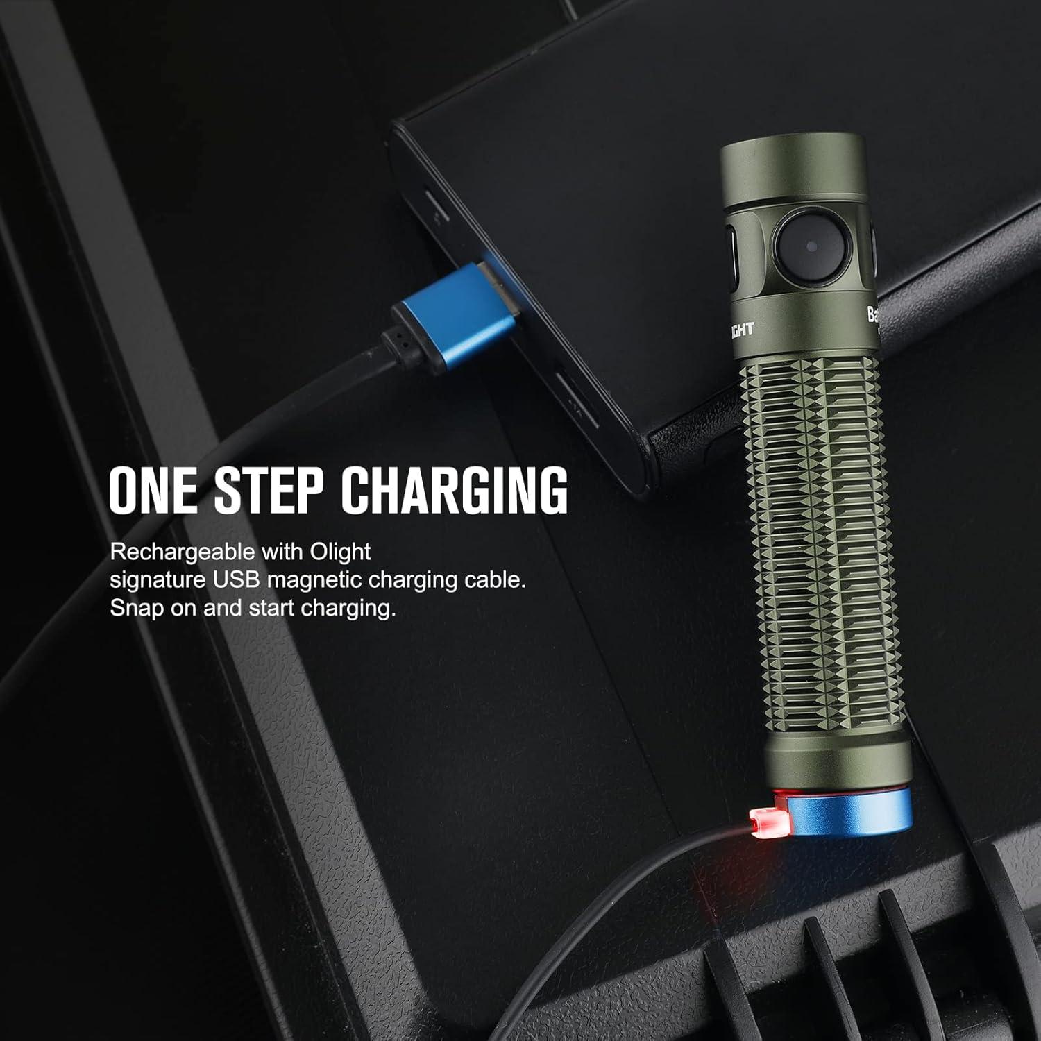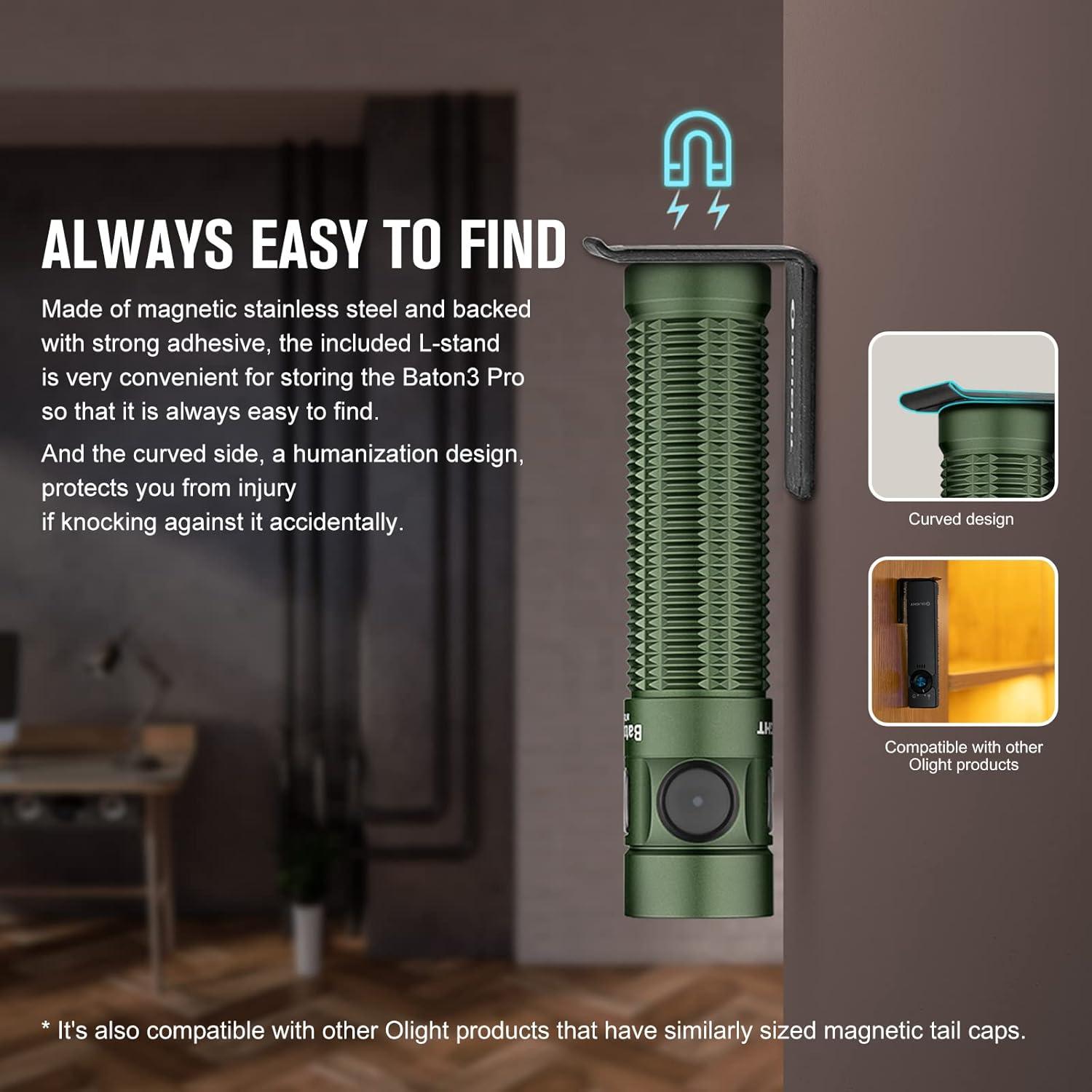imageOLIGHT Baton3 Pro Rechargeable Flashlights 1500 Lumens EDC Light with MCC3 with LShape Stand and HighPerformance LED for Camping and Emergency OD Green Cool White