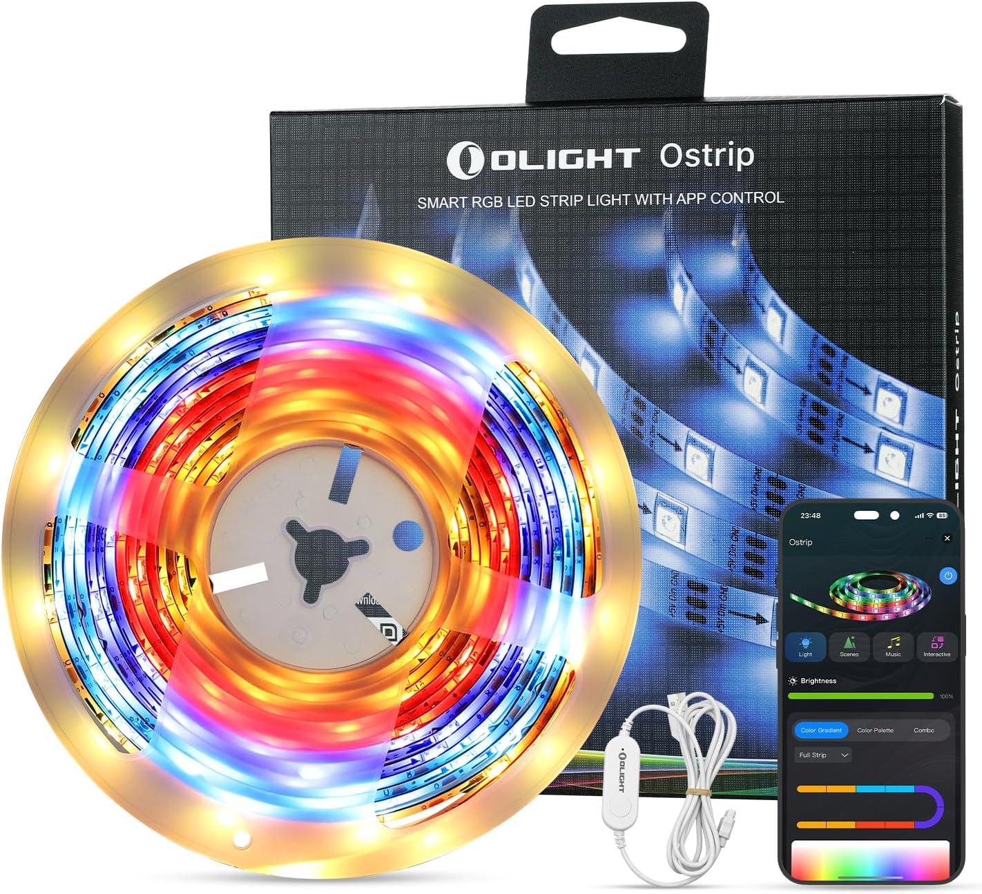 Ostrip:𝐒𝐦𝐚𝐫𝐭 𝐀𝐏𝐏 𝐂𝐨𝐧𝐭𝐫𝐨𝐥: Brightness, color, and mode can be easily controlled via the Smart App at a range of up to 25 meters, choosing from thousands of colors or 66 preset scenes (including 44 named scenes and 22 color combinations), as well as customizing colors by paragraph to create the perfect ambiance