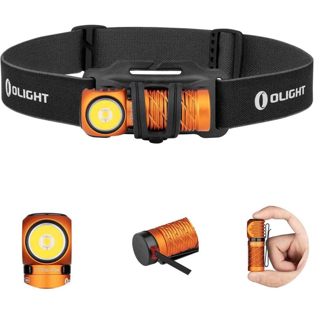 OLIGHT Perun 2 Mini Headlamp 1100 Lumens LED Head Flashlight, Rechargeable Headlight with Red Light Option, Great for Working, Hiking, Camping and Climbing (OD Green Cool Whtie Light: 5700~6700K)(Orange)