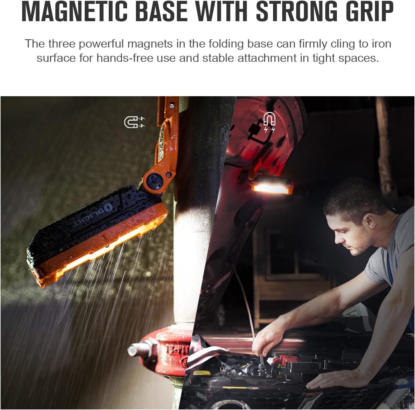 imageOLIGHT Swivel Pro COB Work Light 1100 Lumens LED Rechargeable Flashlight Magnetic Base and Hanging Hook 180 Rotate and 150 Swivel Handy for Car Repair Grill Camping and Emergency Use Orange