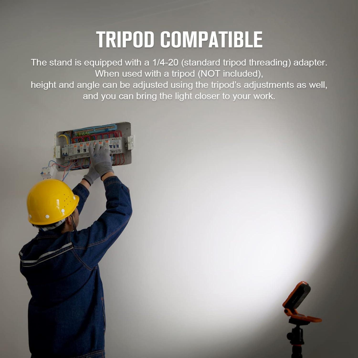 [A Foldable COB and LED Work Light] The COB module projects a smooth, broad beam up to 1,100 lumens for close quarters illumination, while the additional LED provides a more focused beam with longer reach. Both light sources are dimmable to meet your specific needs