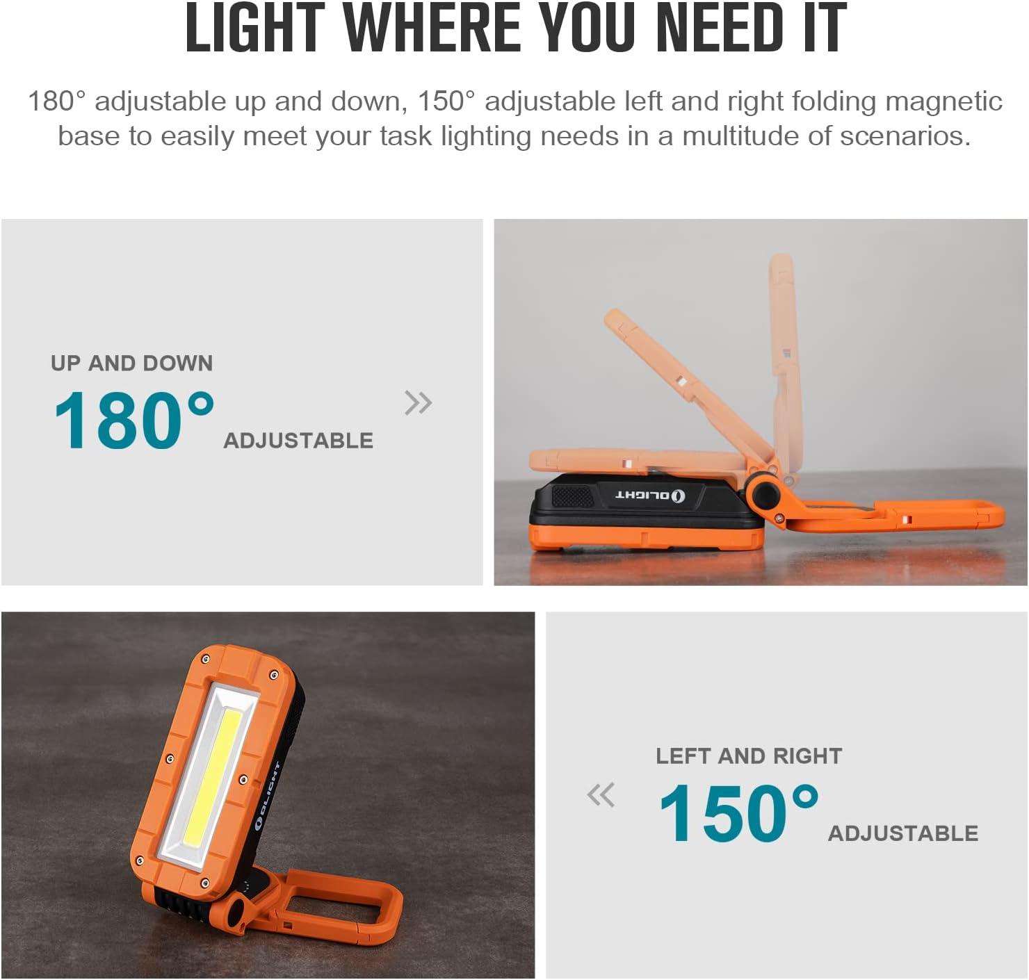 OLIGHT Swivel Pro COB Work Light, 1100 Lumens LED Rechargeable Flashlight, Magnetic Base and Hanging Hook, 180° Rotate and 150° Swivel Handy for Car Repair, Grill, Camping and Emergency Use (Orange)